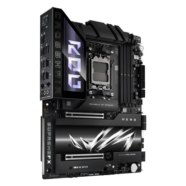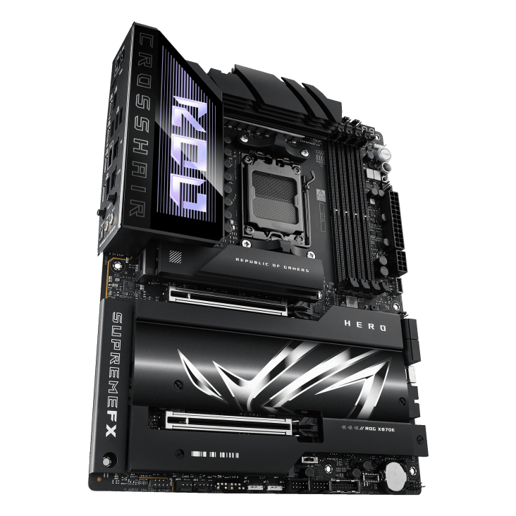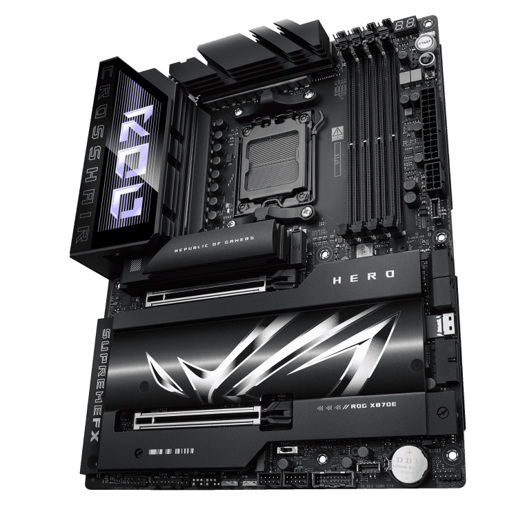 Thermal management is finely tuned with expansive VRM heatsinks, hybrid fan headers, and AI Cooling II, which intelligently balances noise and thermals with a single click. DIY builders will appreciate ASUS Q-Design for simplified assembly and error-free installation. Sync your RGB components using Aura Sync to achieve a cohesive visual setup, and enjoy pristine audio with ESS® ES9219 QUAD DAC and SupremeFX Shielding Technology. Whether you’re chasing competitive edge, professional-grade production, or cutting-edge AI performance, the ROG Crosshair X870E HERO delivers unrivaled control and power for next-gen PC builds.
