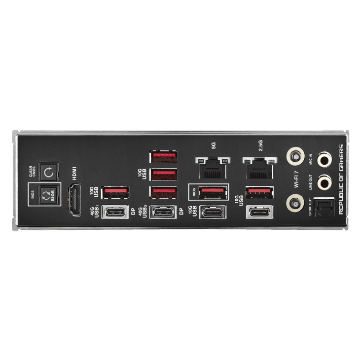 - LAN: 1 x Realtek 2.5Gb Ethernet, 1 x Realtek 5Gb Ethernet, ASUS LANGuard
